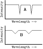 - a) (8 pts) Which of these two stars is probably larger in size (A, B, same size)? Justify your answer completely. In other words, ³Star A is smaller because the lines are deeper/same strength/wider.² is an example of insufficient reasoning. Why can you tell anything about the size of the star based on the spectral lines? Explain that.
